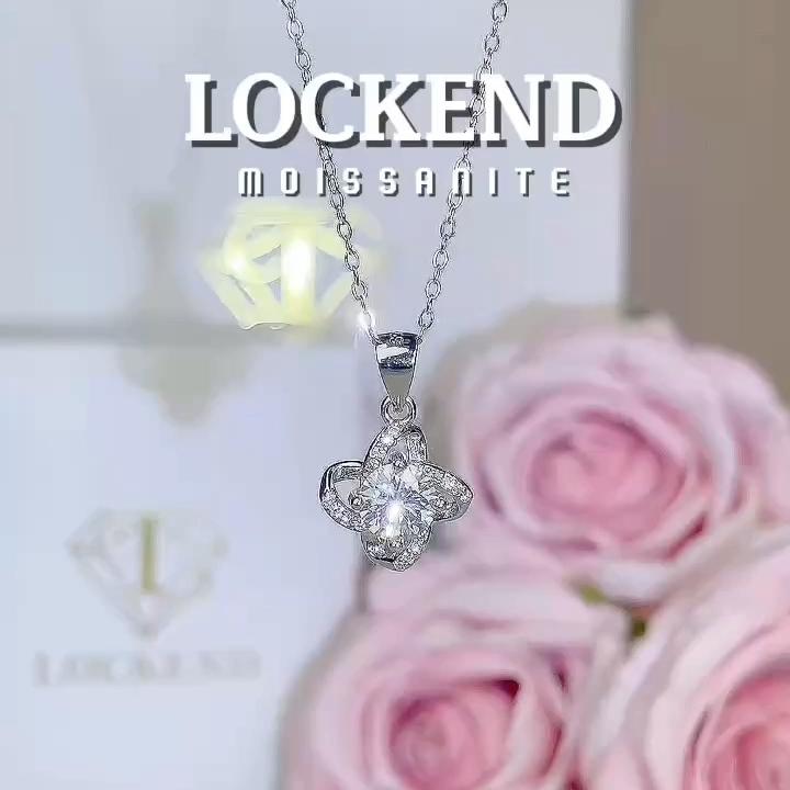 [Lockend]Nhẫn Bốn Lá May Mắn Đính Đá Sang Trọng 1 Carat D Moissanite Dây Chuyền Bạc 925